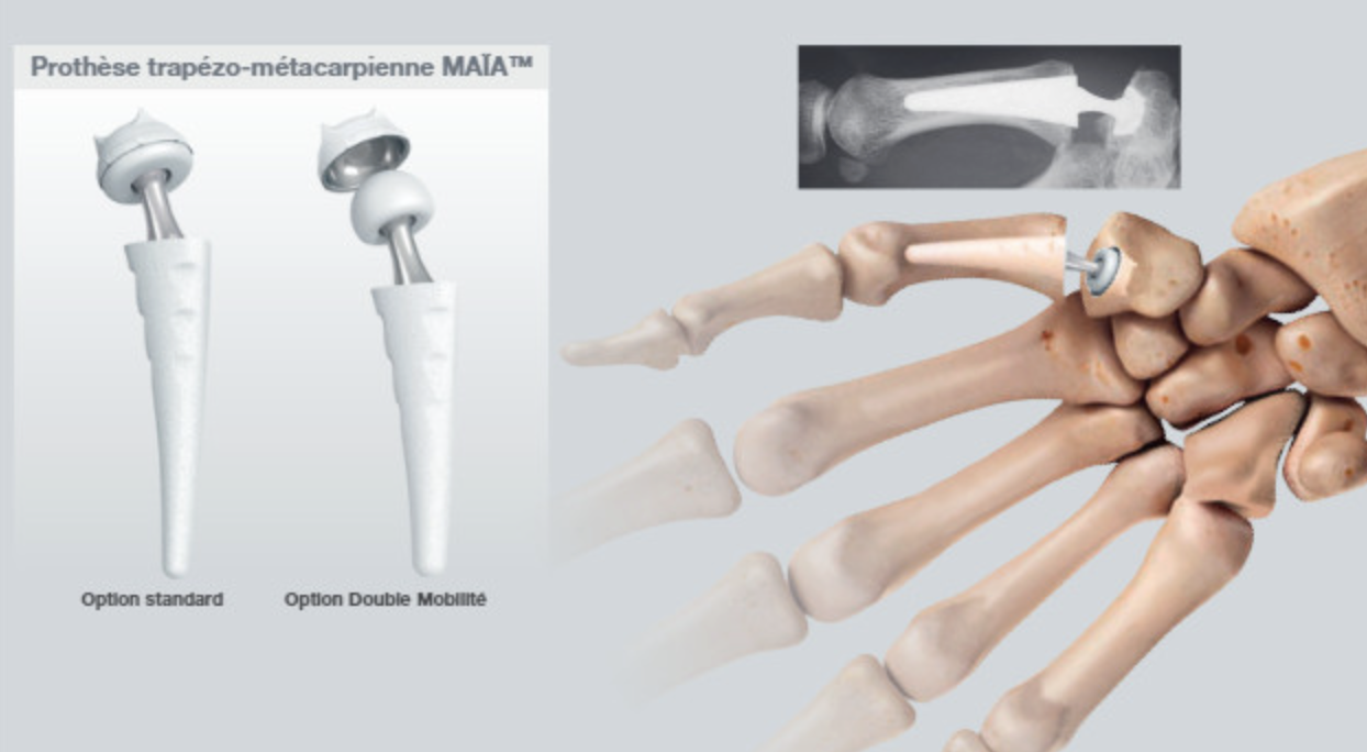 - Prothèse trapézo-métacarpienne : Il est possible de poser une prothèse pour remplacer l’articulation, à l’instar de la prothèse de hanche. Cela permet de maintenir la mobilité tout en supprimant la douleur, et de retrouver la force.
