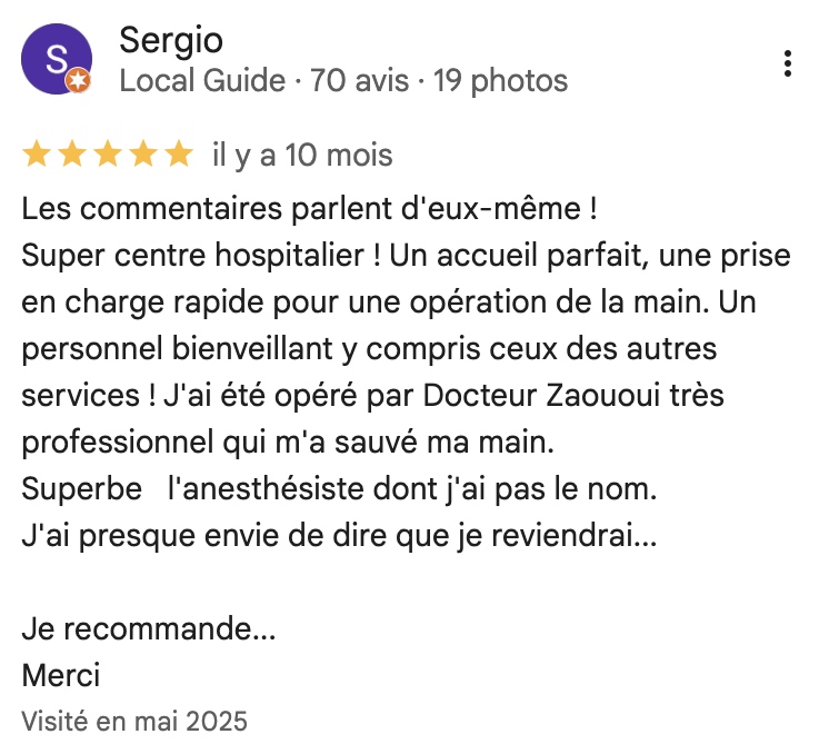 En cas de traumatisme de la main, vous êtes d’abord examiné par un médecin urgentiste au service des urgences de la clinique Sainte-Marie, ou par un autre médecin qui vous adresse si nécessaire à notre service.